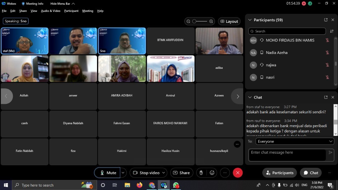 11 Jun 2024 – UTMSPACE telah menganjurkan Wacana Ilmu Bersama Alumni Siri 3/2024. Program ini juga diadakan pada jam 3.00 petang sehingga 4.00 petang yang disiarkan secara langsung di FB UTMSPACE dan Webex.
