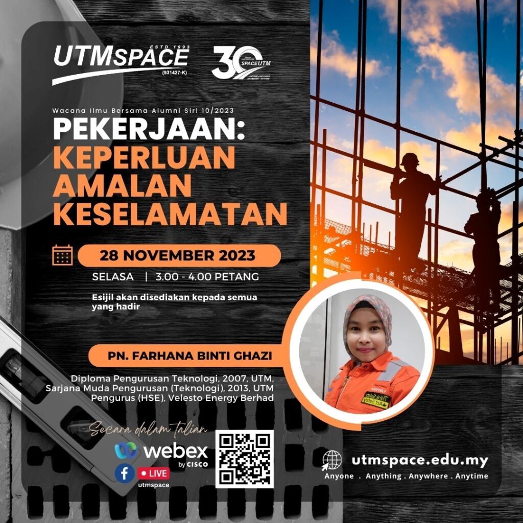 UTMSPACE WACANA ILMU BERSAMA ALUMNI SIRI 10/2023 : PEKERJAAN ; KEPERLUAN AMALAN KESELAMATAN