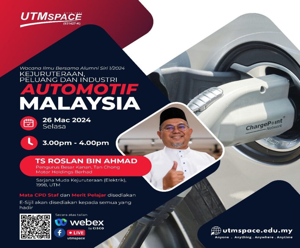 Wacana ini telah disampaikan oleh Alumni UTM iaitu Ts Roslan Bin Ahmad merupakan Pengurus Besar Kanan di Tan Chong Motor Holdings Bhd. Beliau juga dianugerahkan Sarjana Muda Kejuruteraan (Elektrik), 1998, UTM. Wacana sesi ini juga mencatatkan kehadiran atas talian seramai