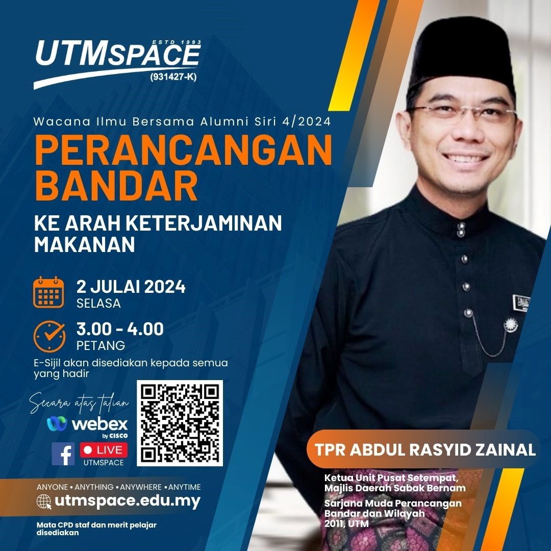 UTMSPACE WACANA ILMU BERSAMA ALUMNI SIRI 4/2024 : PERANCANGAN BANDAR KE ARAH KETERJAMINAN MAKANAN