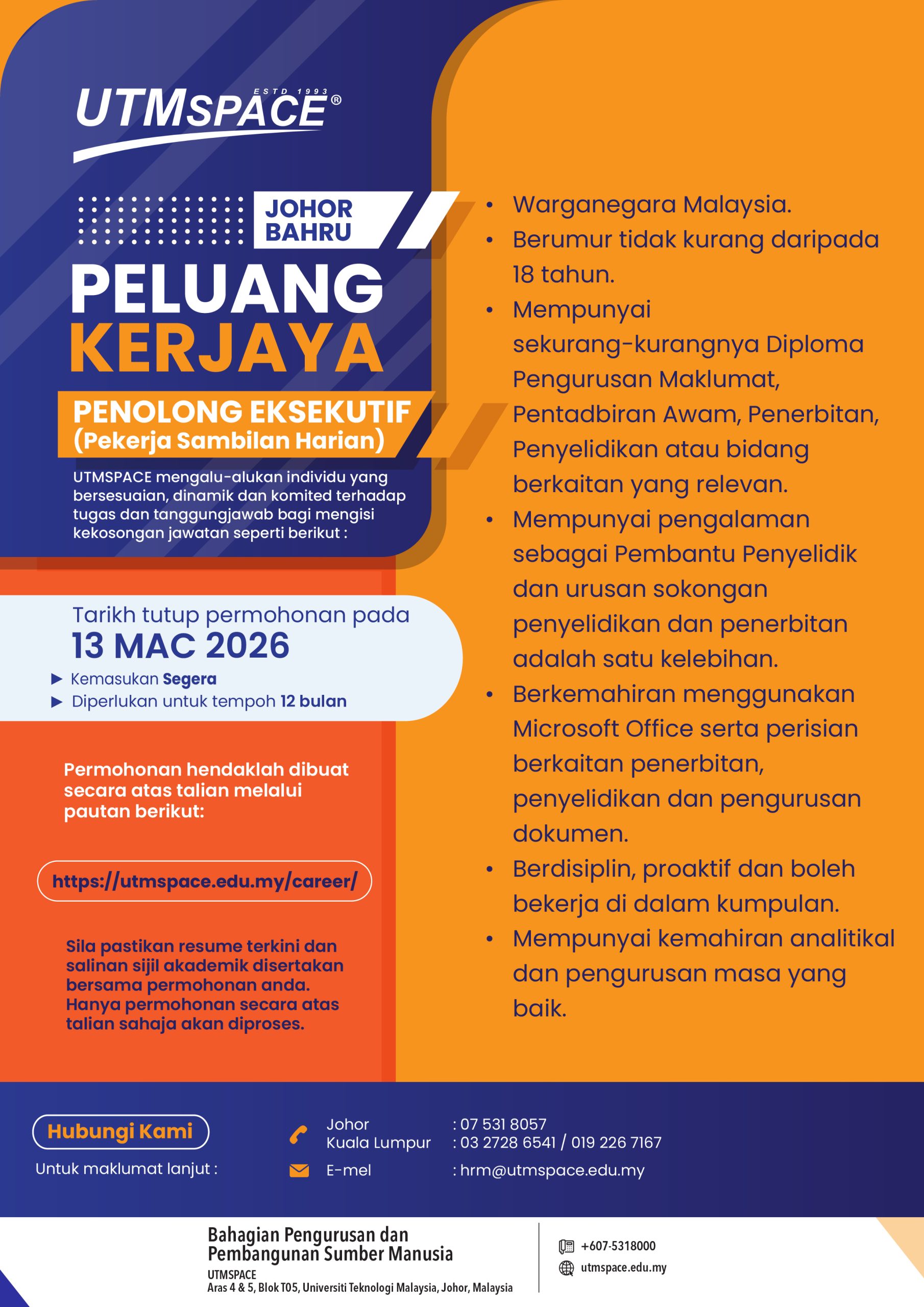 Email : hrm@utmspace.edu.my