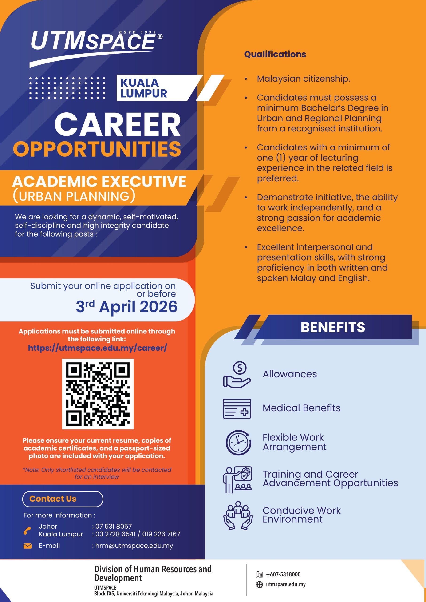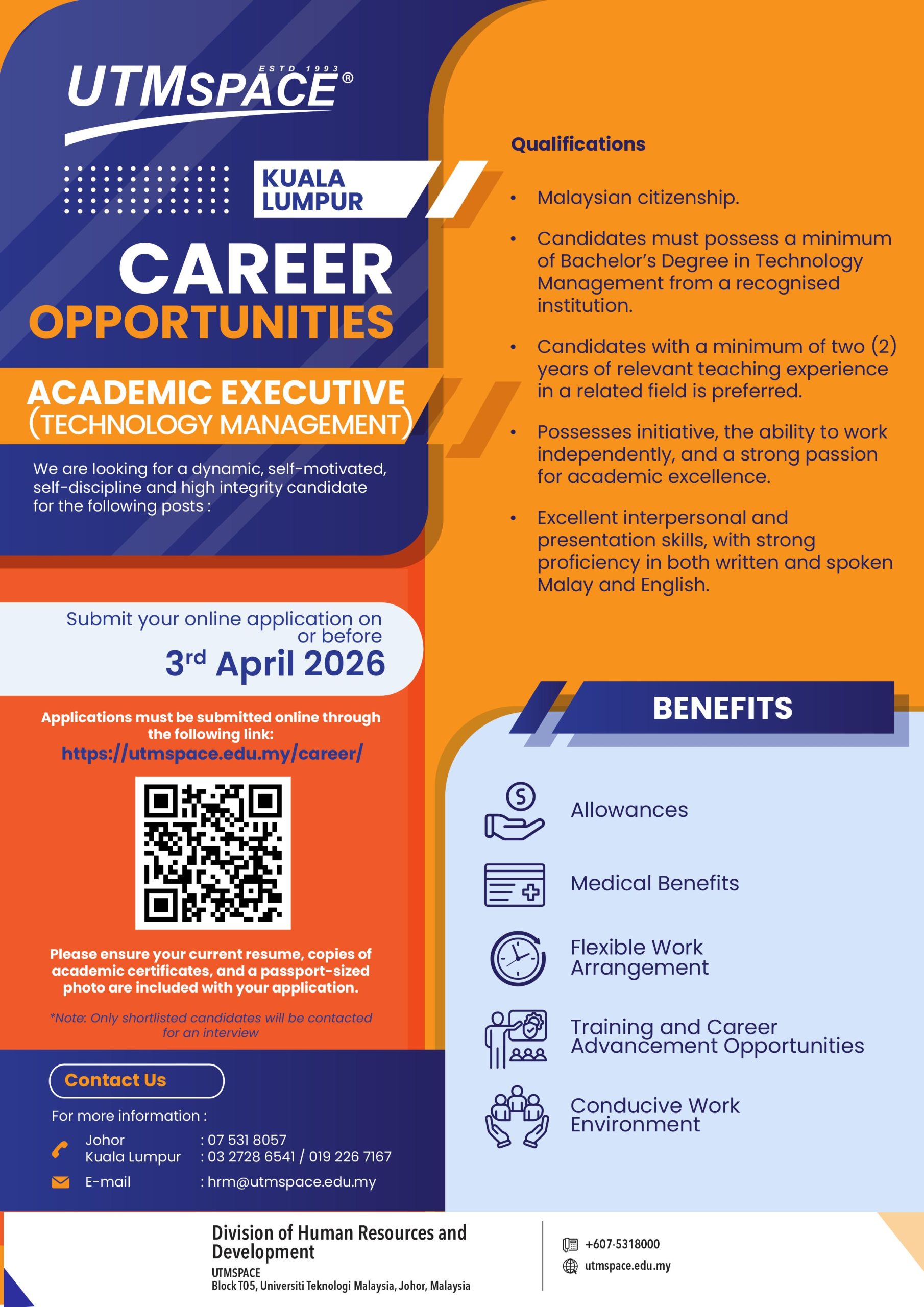 +607 531 8000 (JB) | +603 2728 6500 (KL) | ✉ corporate@utmspace.edu.my