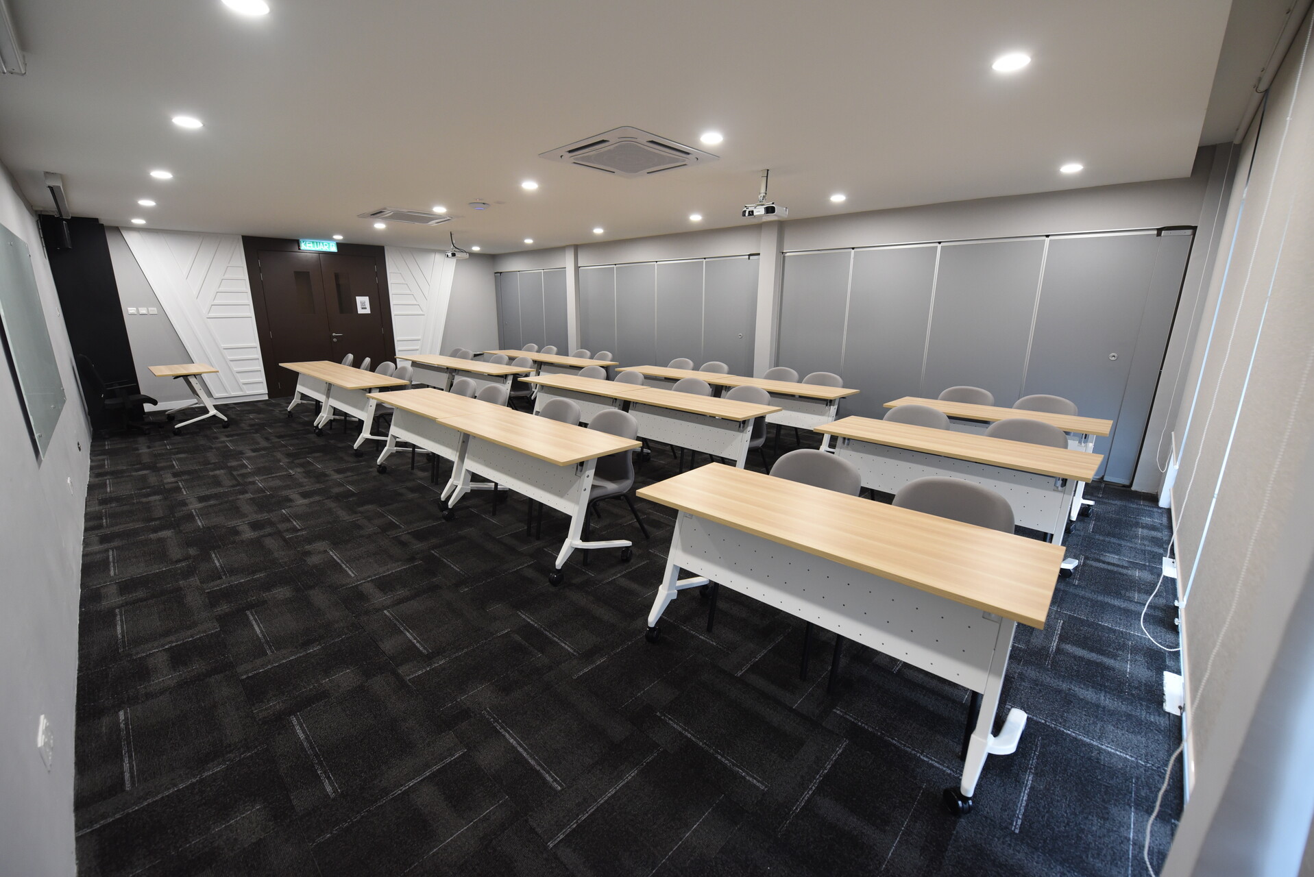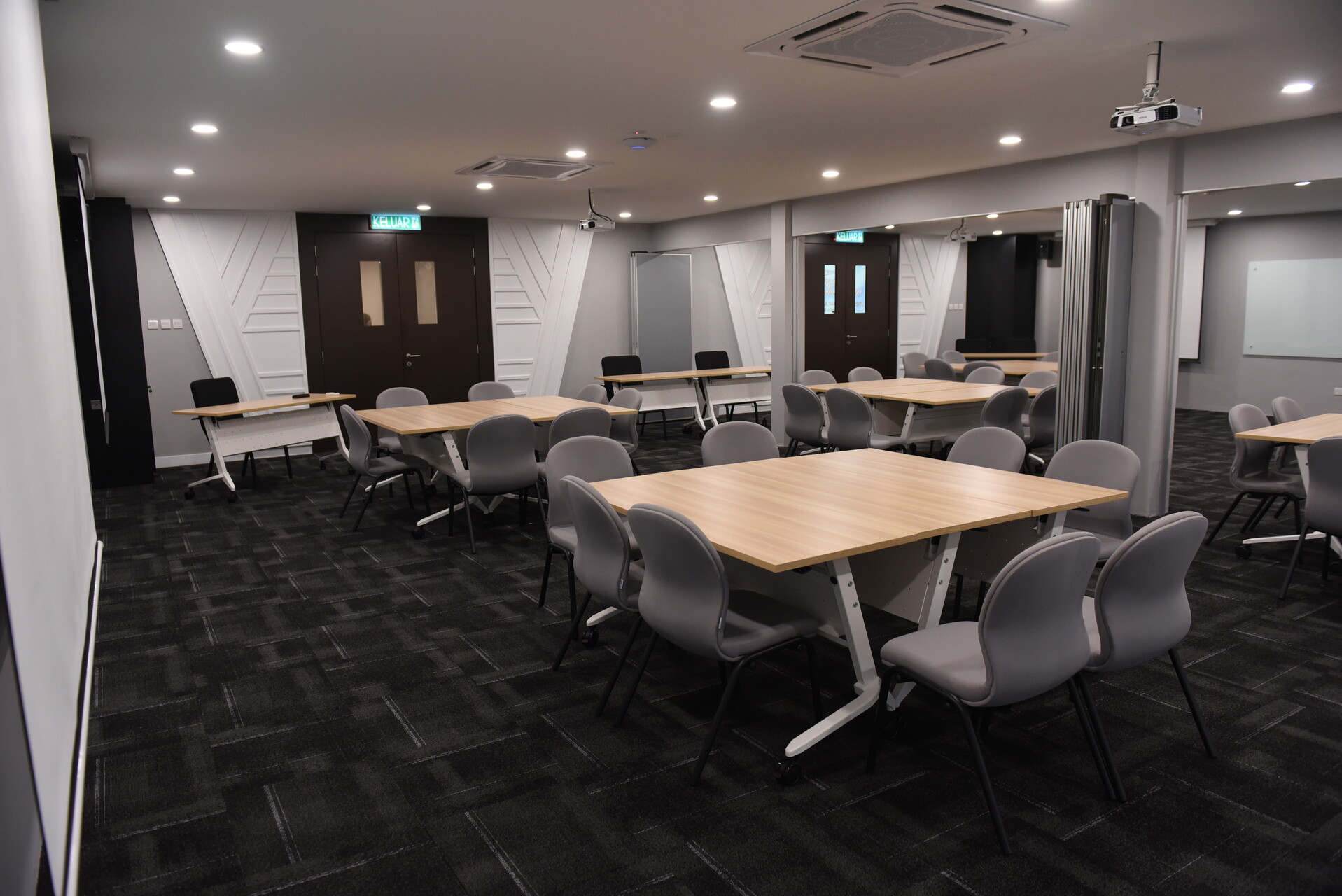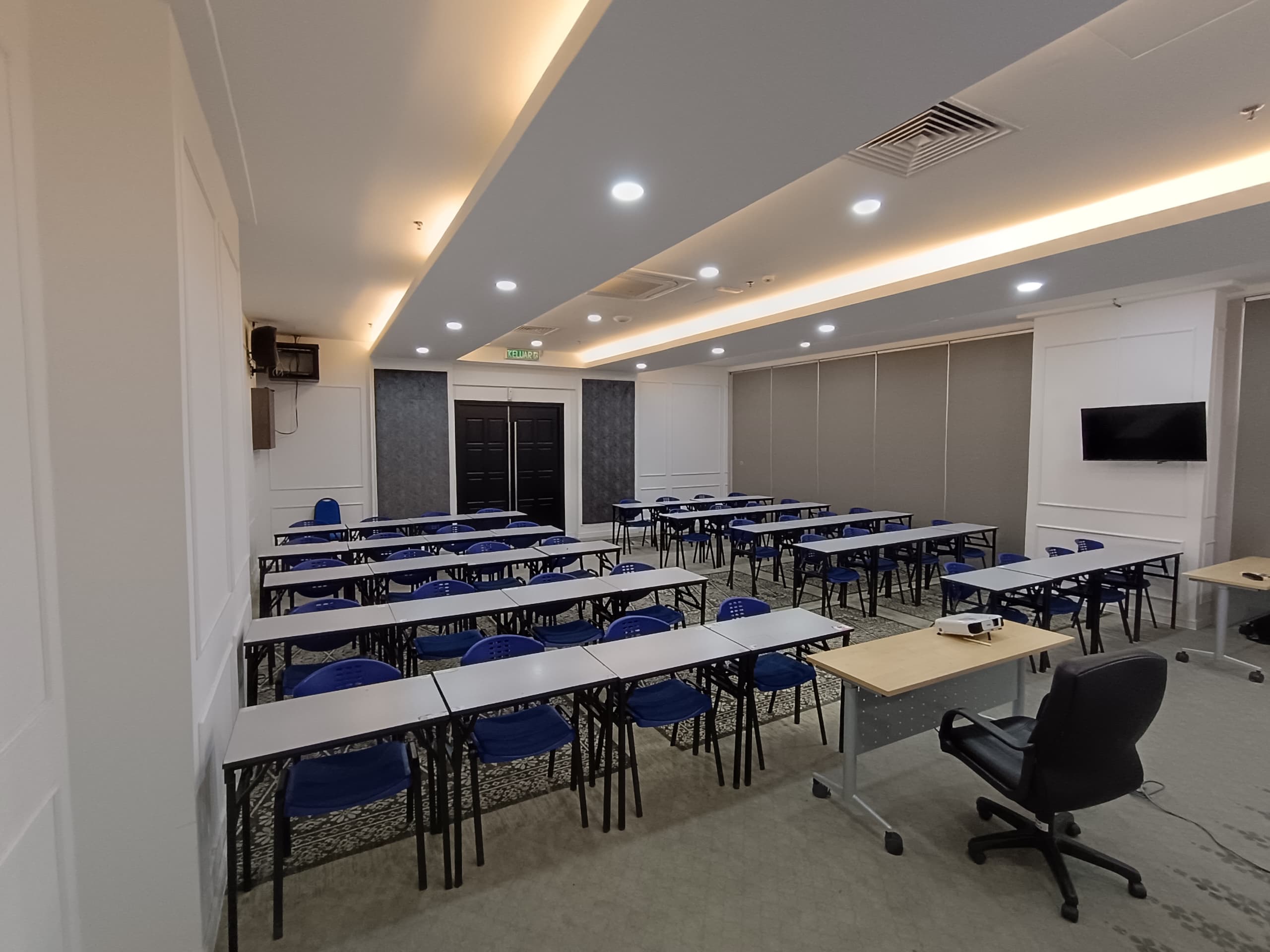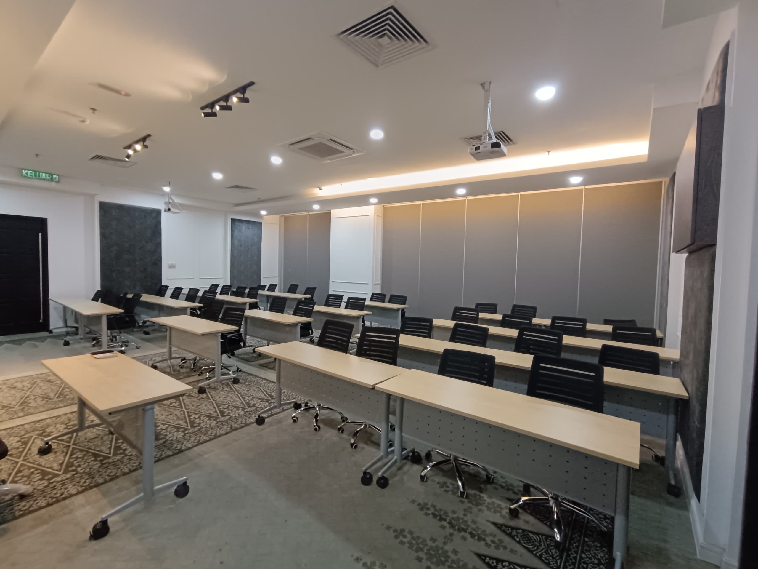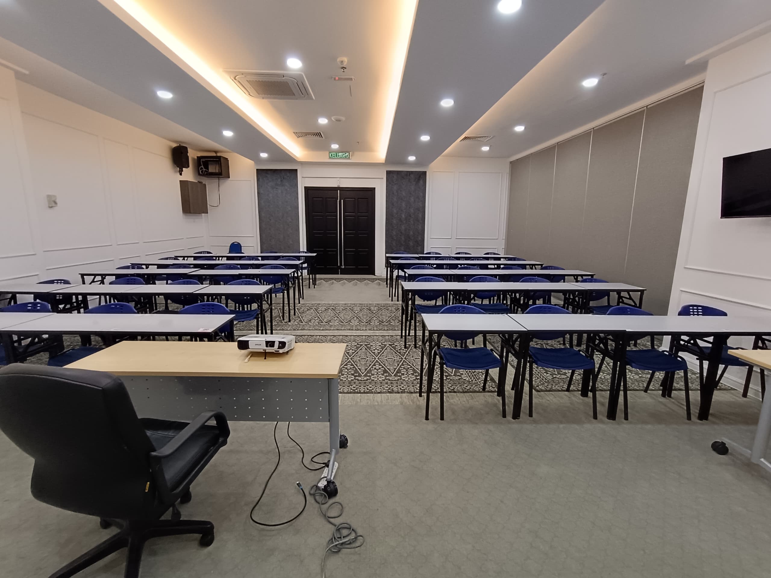 Aircond, Projector, Whiteboard, Table, Chair