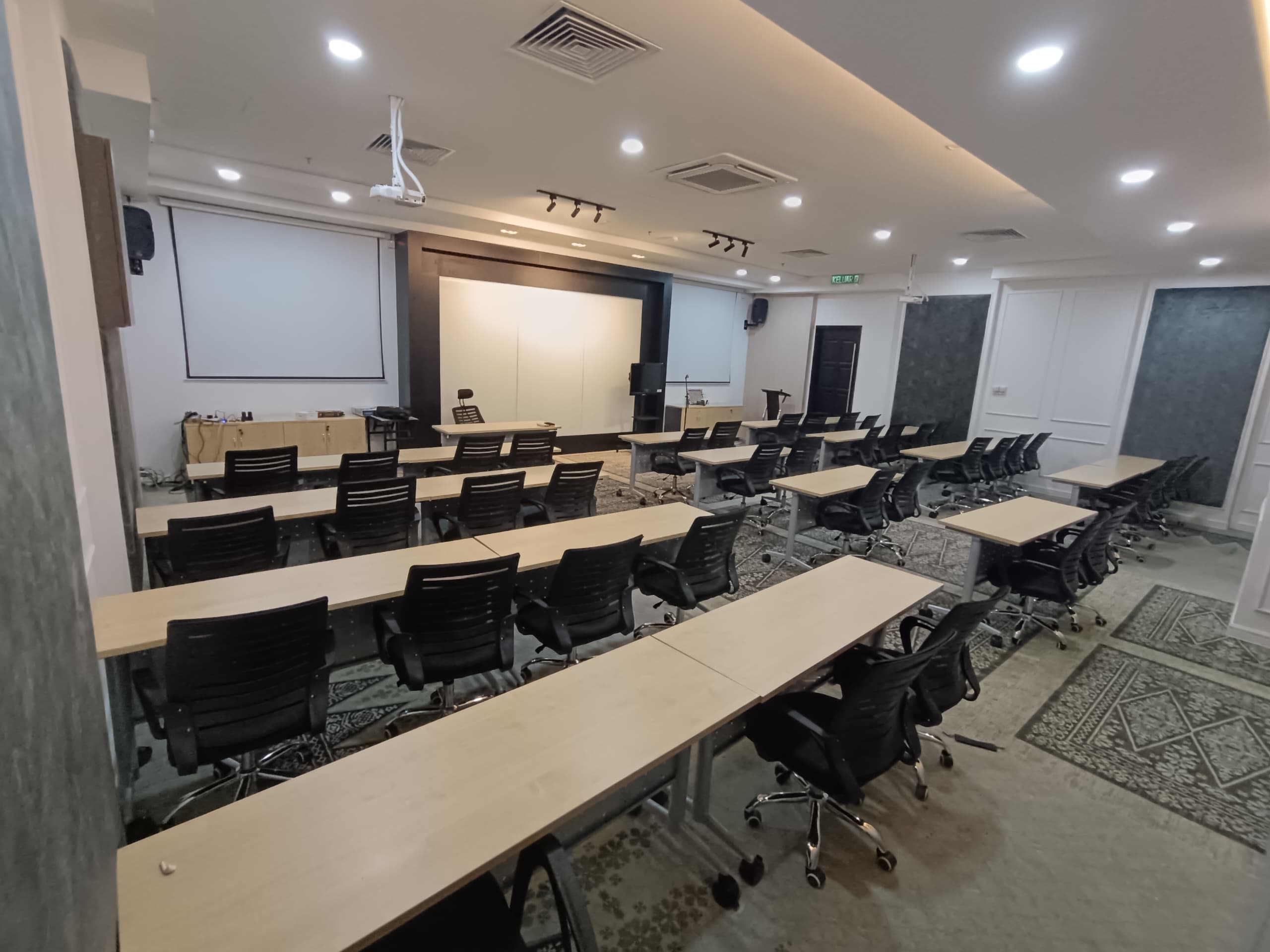 3 Doors, 60 seats (Seminar Hall), 32 seats (Dining Room)